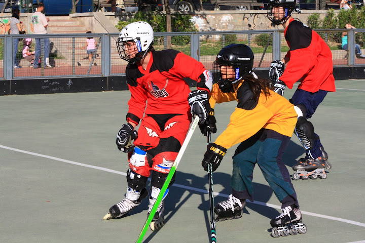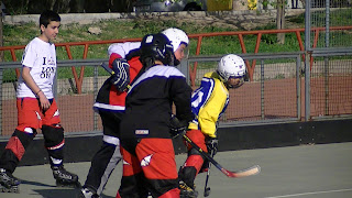 Y llegaron los Revietakiwis contra los Ovejas Negras Senior. ¡Que partido! Rubén de nuevo en una pista de hockey, ¡Todo un espectáculo! Y dos equipos enchufados de verdad. Todas las faltas que no se habían producido hasta entonces se pitaron en este partido. Y daba igual la categoría o sexo de los jugadores todos se empleaban a fondo. El marcador pasó de uno a otro lado hasta el 3-3 definitivo.