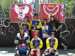 Y la final la disputaron los Fénix contra Los Sticksprebenjamín y se las prometían muy felices contra unos Sticks que contaban con el núcleo de las Walkyrias sub-14 de la liga regional mas unos chicos que este año había jugado la copa regional pero no la liga. Pero l@s Sticks no dieron el partido por perdido en ningún momento. A pesar de que el control del puck todo el partido fue de los Fénix l@s Sticks plantearon a defensa muy seria, estaban en todas partes, y frustabanr un ataque tras otro de los Fénix, unido a una increíble actuación de Alex en la portería Stick. Lo cierto es que Los Fénix lo intentaron una y otra vez, y que tuvieron oportunidades que inexplicablemente no eran capaces de convertir en gol, algún tiro al larguero.... Y cuando parecía que iba a decidirse la liga en los penaltis, Dani marcó el gol que le daba el título a los Fénix cuando ya habían cantado desde la mesa que estaban en el último minuto.