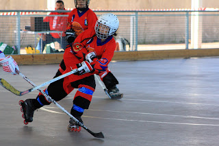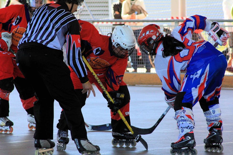 Comenzó el partido a la hora exacta, con dominio por parte nuestra. Empezamos presionando mucho y queríamos marcar rápidamente, lo cual provocaba que los tiros no fueran muy peligrosos. Según fueron pasando los minutos nos relajamos e intentamos elaborar un poco mas las jugadas. Y dio sus frutos. En el minuto 18:21 tras un ataque de las caníbales de Las Rozas recuperamos el disco, y Bego salio en contraataque por la valla realizando un pase a Olga que entraba por el centro de la portería y anotaba el primer gol del partido.