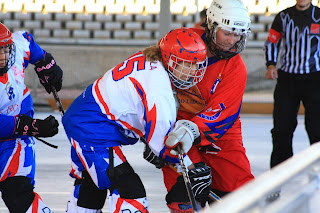 Tras esta jugada llegaria la expulsion de Miri, y nos dejaba la segunda inferioridad del periodo. También transcurrio sin que encajaramos ningun gol. Cuando quedaban pocos minutos en el marcador realizamos un saque de face off en la zona ofensiva, ganamos el saque, y Ana pasó a Bego en el centro de la pista y, aprovechando la pantalla que Olga estaba realizando a la portera de las Rozas, lanzó el puck directamente a la red, el 4 gol del partido.
