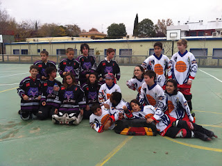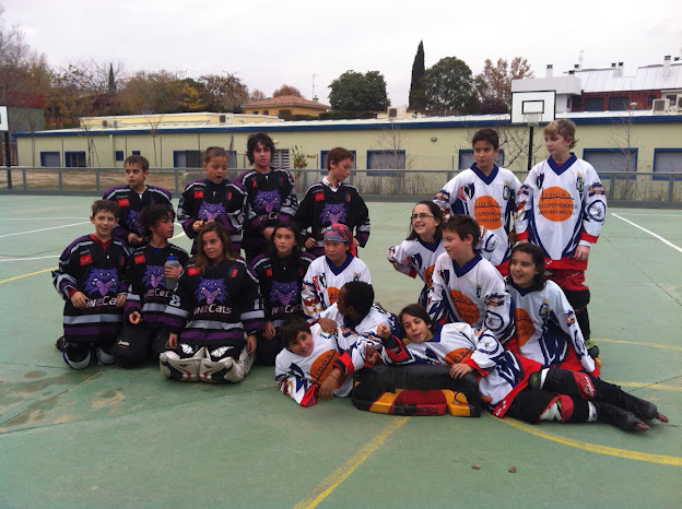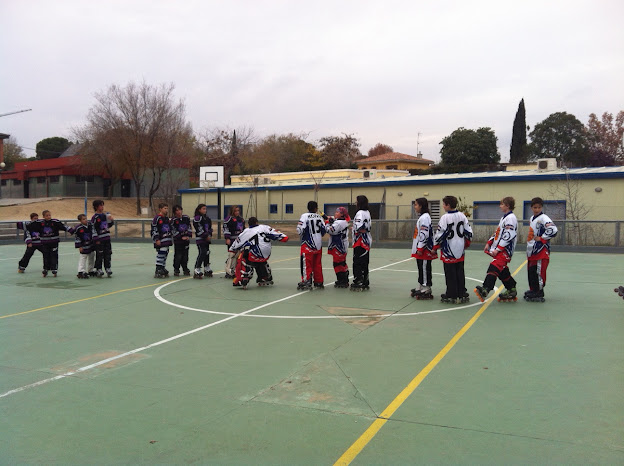 Mientras las Walkyrias jugaban un partido difícil nuestros benjamines se enfrentaban a los Inline Cats de Pozuelo y como todos sabemos en un campo que se hace imposible jugar al hockey. Los chicos intentaban regatear, dar pases, vamos, jugar, pero era imposible: la pastilla y los chicos se tropezaba una y otra vez con los muchísimos baches y desniveles que tiene el campo.