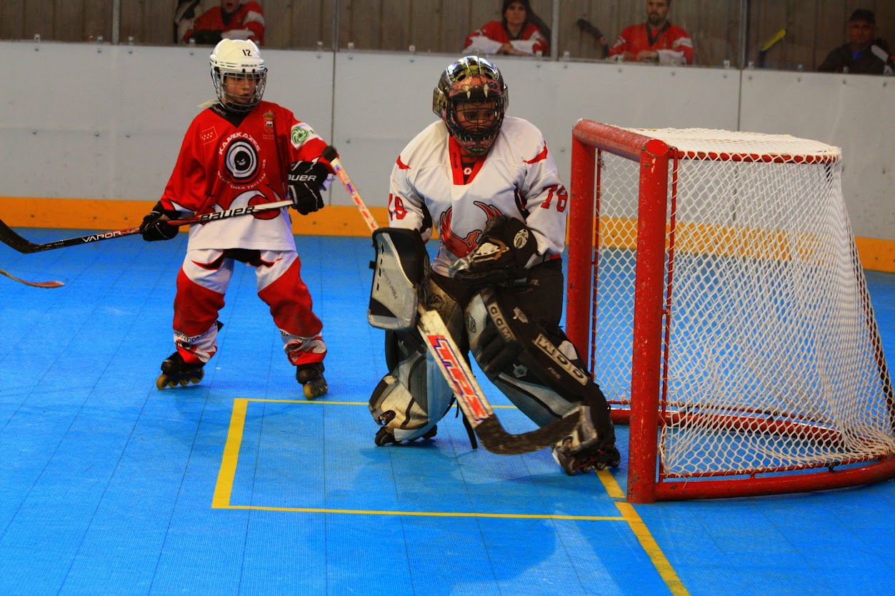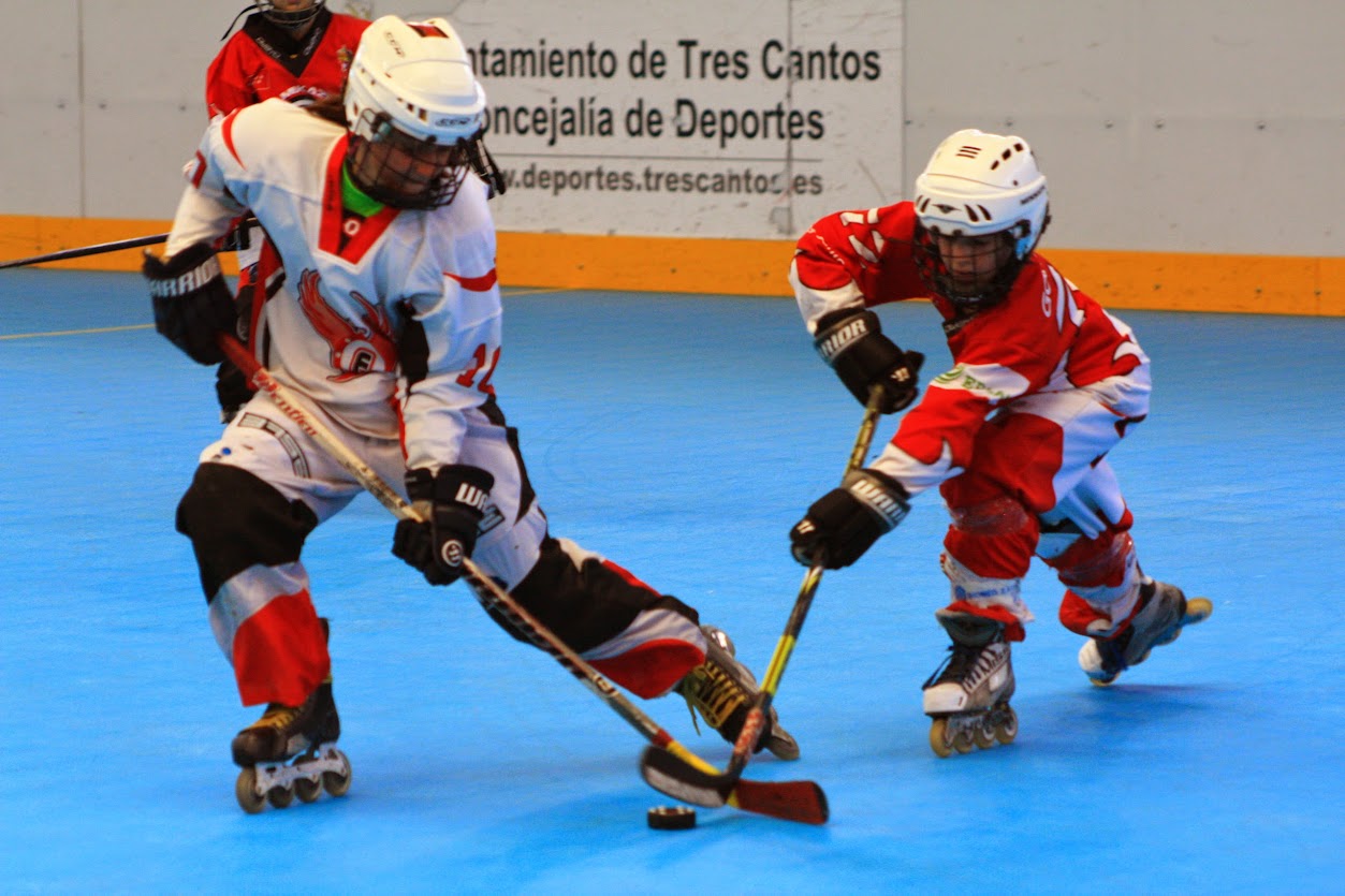 Pero tres cantos seguía apretando y después de ese saque desde el medio del campo, Gonzalo, corre a portería, hace una entrada a Gonzalo que comienza por la izquierda, cambia en el último segundo la pastilla de lado y le mete la pastilla a Gonzalo por el hueco que dejó libre en el otro palo, el reloj marcaba 1:38 y nos sorprenden con un nuevo gol de tres cantos justo antes de terminar la primera parte. La cosa se ponía más complicada, nos enfrentábamos a un 4-1, pero no estábamos dispuestos a dejarlo ahí, por eso después de una jugada rápida de Pablo que sube atacando directamente a portería, pensamos que podría terminar en gol, pero en el último instante es desviado por uno de los patines de Patricia, cuando se aparta, dejándole un nuevo hueco a Pablo para el tiro, que realizó, pero terminó en una buena parada de su portero.