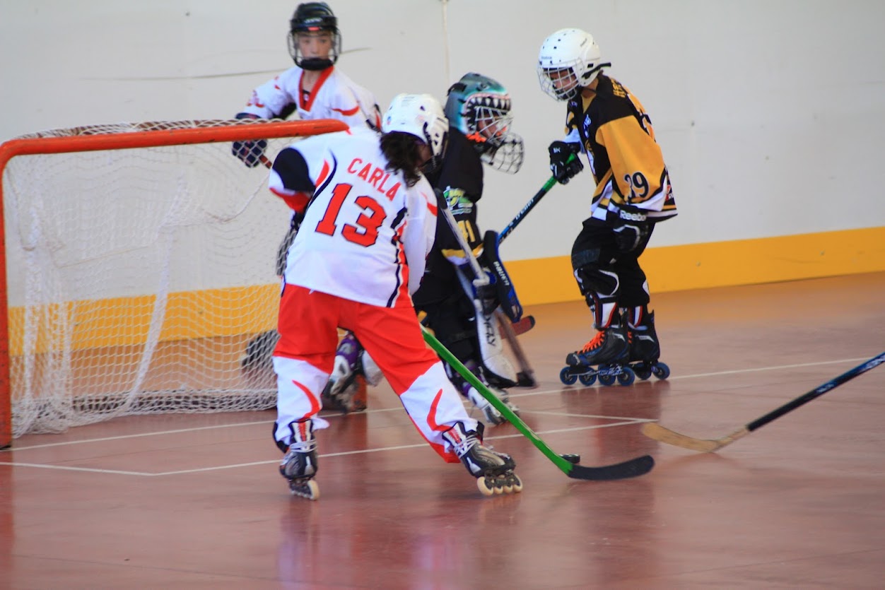 El partido comenzó con nervios, pero con los jugadores muy serios en la pista, jugando con fuerza y patinando fuerte. Nos adelantamos nosotros en el marcador en el minutos 7:53 con gol de Carla a pase de Patricia.