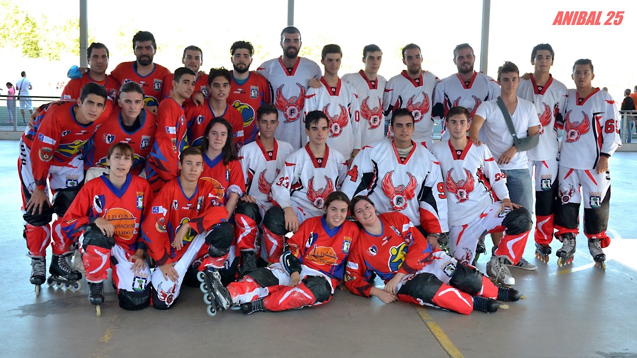 En los Fénix A tenemos a las dos líneas del año pasado, aunque el sábado había dos ausencias, una dellas por lesión (recupérate pronto Fer) y además toda una línea nueva, Carlos y Pablo Casado procedentes de las Rozas, Edgar Robles procedente de los Águilas y Javier Aguilar procedenete del CHL Murcia 2008. Grandes incorporaciones al club.