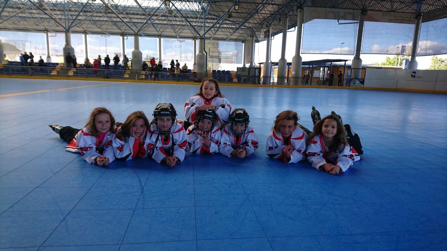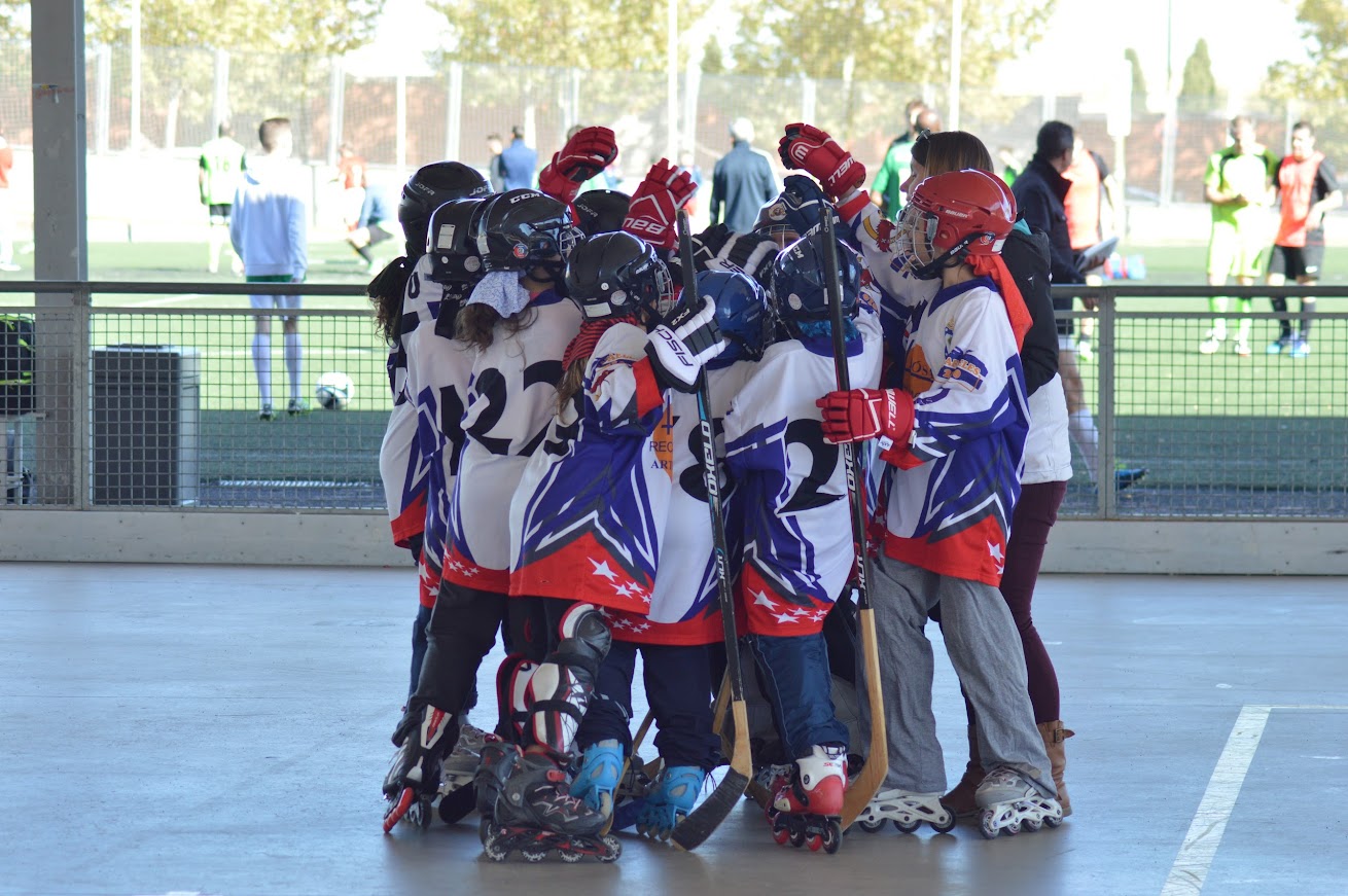 El equipo venía muy concienciado de los retos que suponía este partido: enfrentarse al actual campeón de la categoría y en su propia pista!! Necesitaban demostrar que la experiencia del año pasado no había caído en saco roto, que el esfuerzo de los entrenamientos sirve y que este año vuelven a la liga para jugar a hockey y para divertirse haciéndolo.