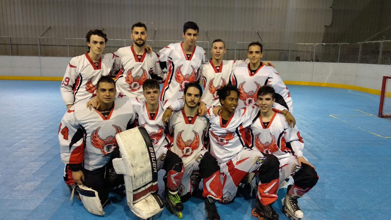 Empieza la segunda parte, un quinteto innovador , Javi (como no) en la portería , en la defensa Elvira respaldada con Guillermo y en ataque la pareja Diego y Alejo. En los primeros minutos de la segunda parte lanza Elvira el disco fuera de nuestra portería donde entre Alejo , Diego y los defensas contrarios en una lucha de tu a tu montan un barullo cerca de la portería contraria y ahí en ese remolino de patines y sticks llega un espabilado Diego que centra a Guillermo y este mete el suyo y marcar el primer tanto de los Fénix , bravo Fenix sin lucha no hay victorias!!